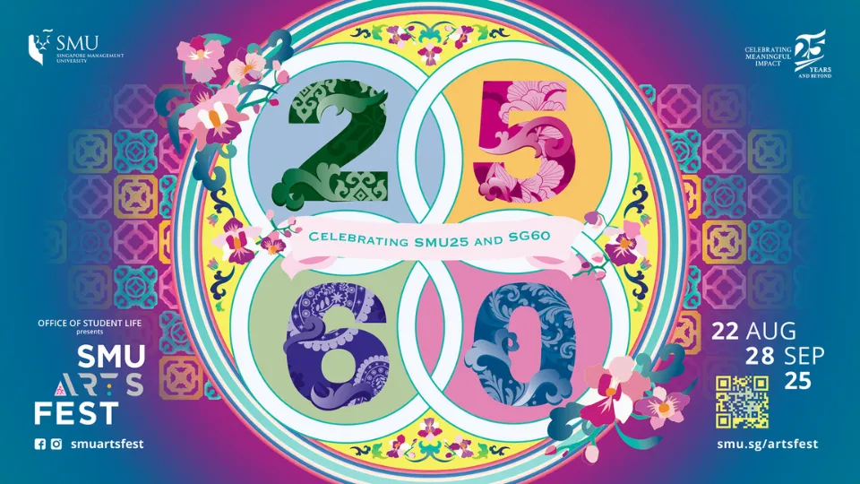 SMU Arts Fest, 2560 celebrates 25 years of SMU and 60 years of Singapore through the lens of youth. Featuring homegrown talent, stories and conversations, the festival spotlights local creativity, bridging tradition and tomorrow.